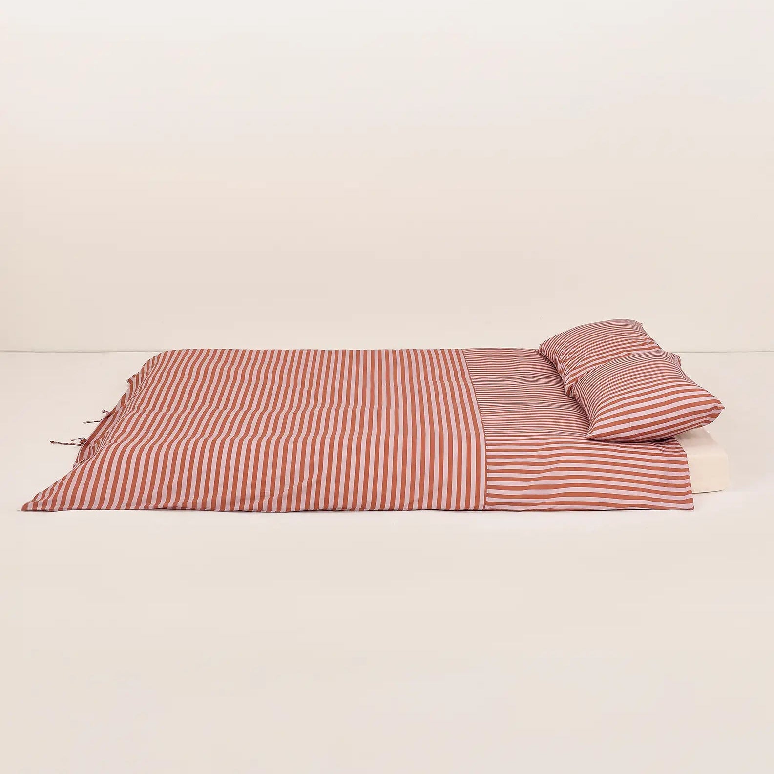 Nobodinoz Leonard Double Duvet Set in Rust Mauve Stripes