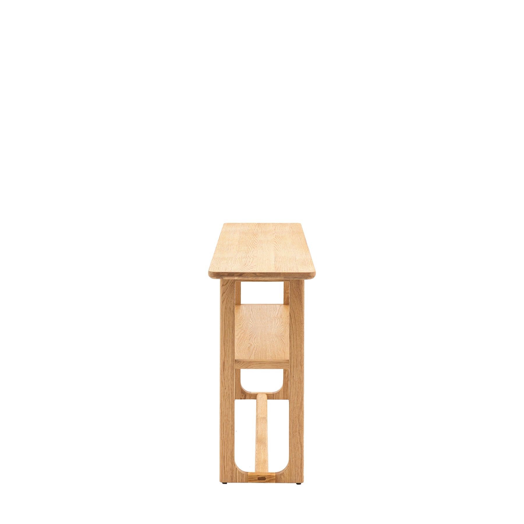 Crafted from the finest oak and structural oak veneers where practical, this beautiful console table would suit a wide range of interiors. The elegant underframe offers structural stability combined with style and the shelf adds extra practicality to the table. The wood has a lovely natural finish. The table is also available in a smoked finish, and matching pieces are available.