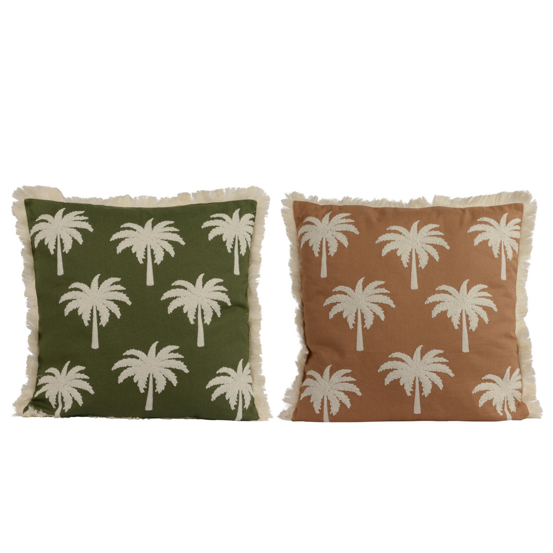 Set of 2 Embroidered Palm Fringe Cushions