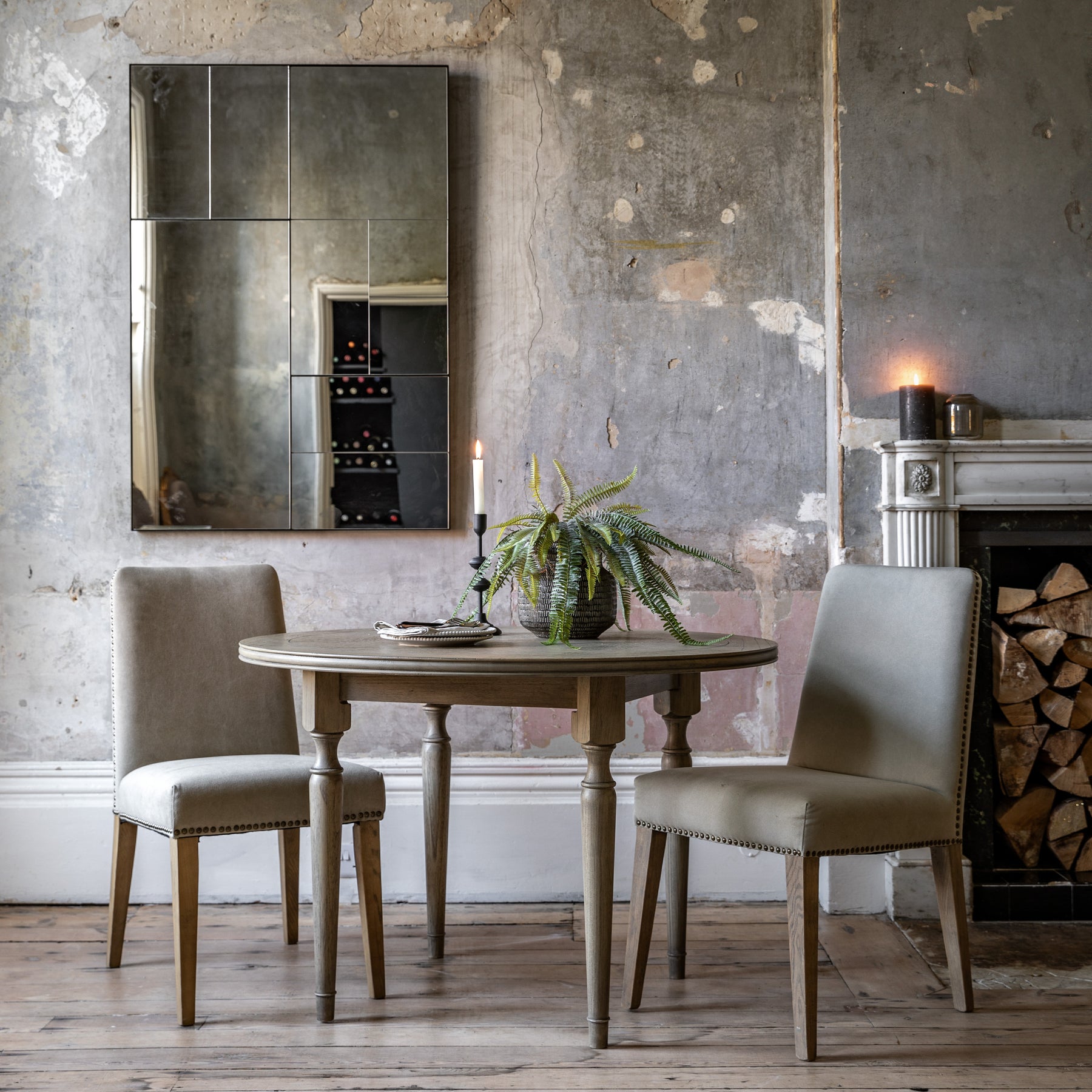 This round dining table adds a sophisticated touch to a room. The top features the signature parquet-style design, whilst the spindle legs add elegance and style to create a beautifully proportioned design piece.