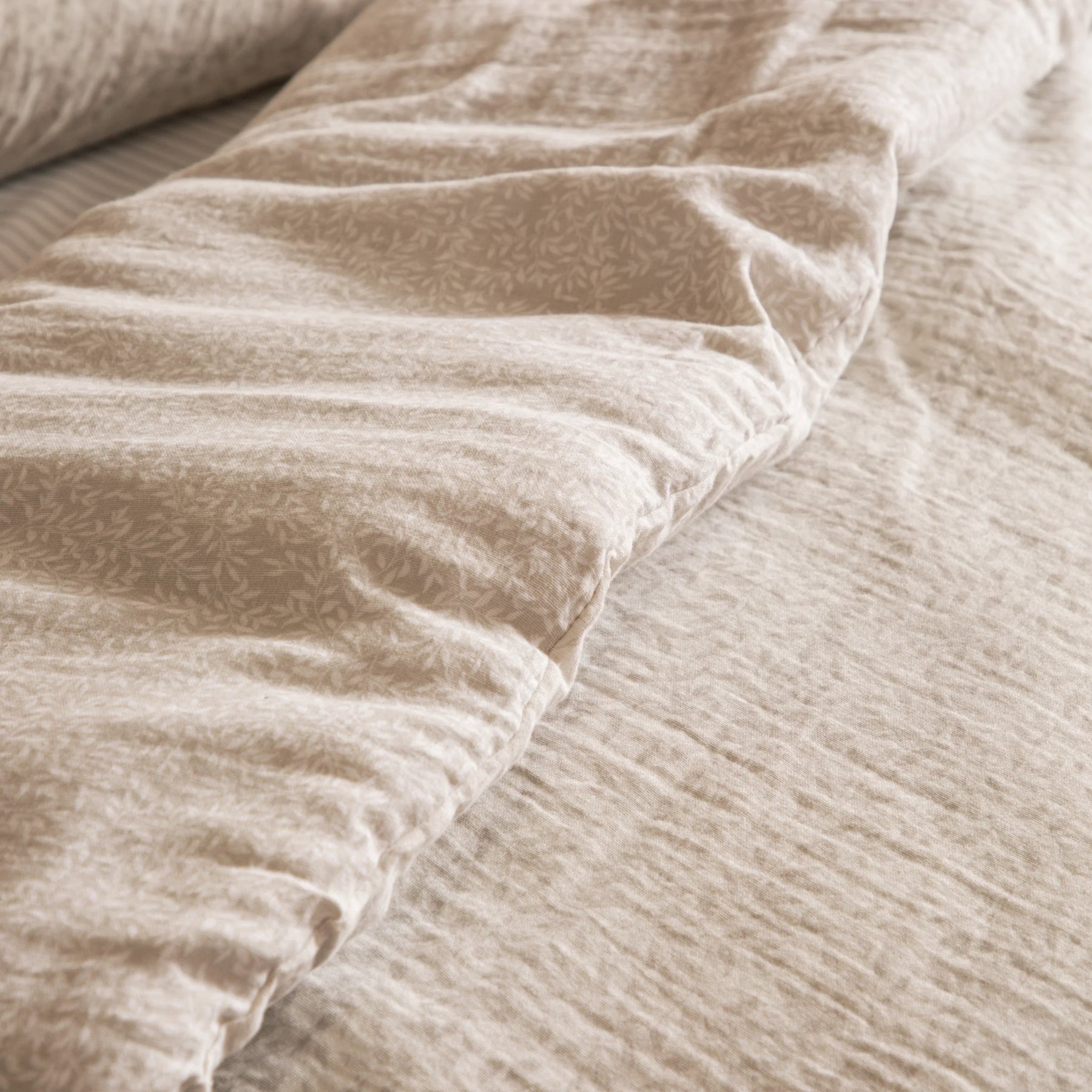 Perrie Leaf Muslin 100% Cotton Duvet Cover Set in Natural