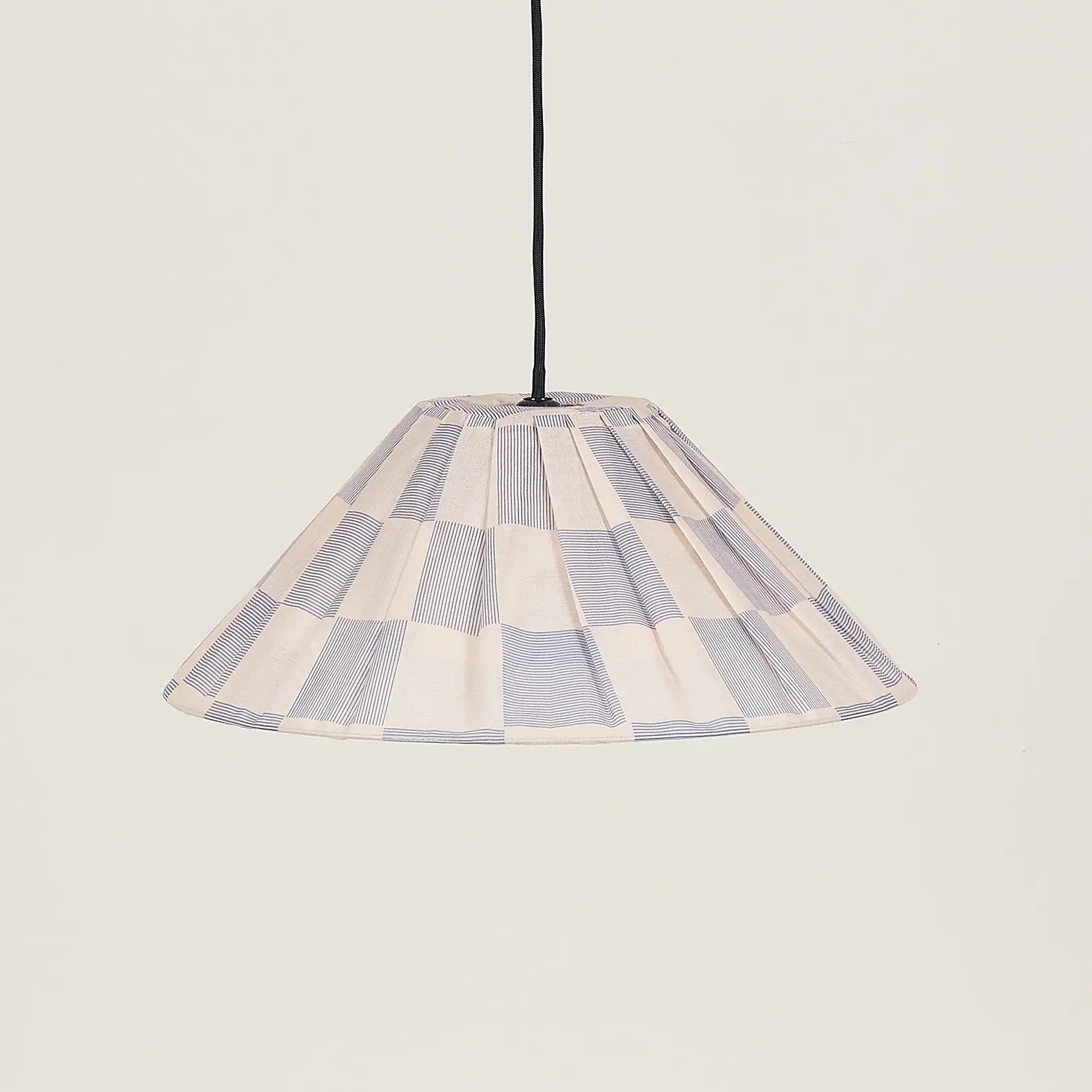 Nododinoz Ava Pleated Lampshade in Blue Ink Checks 50cm