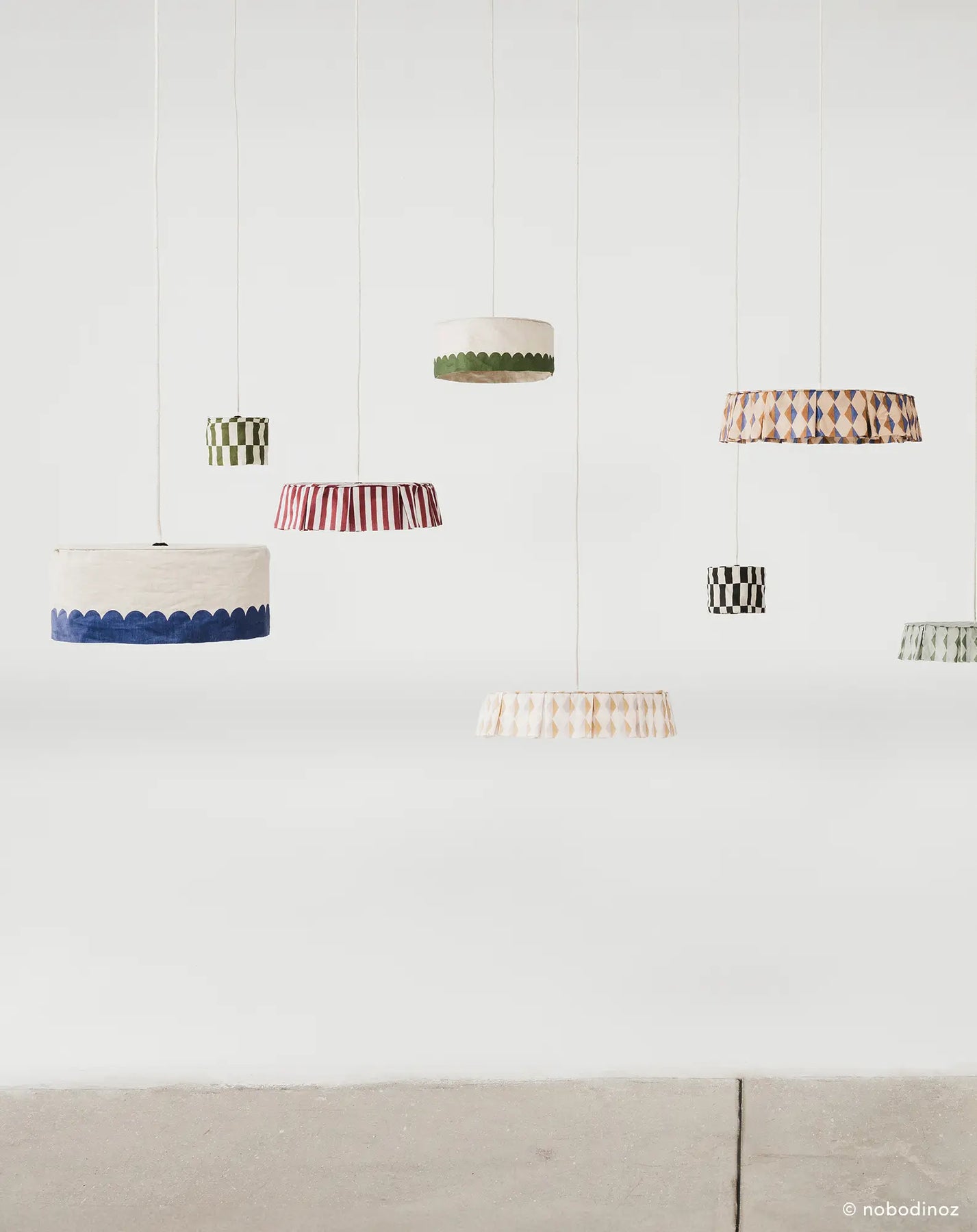 The crush from the Vibes collection: the graphic lampshades in linen or cotton voile. Customize your decor, create a variety of moods, and make your home elegant, optimistic, and lively. You can use them: