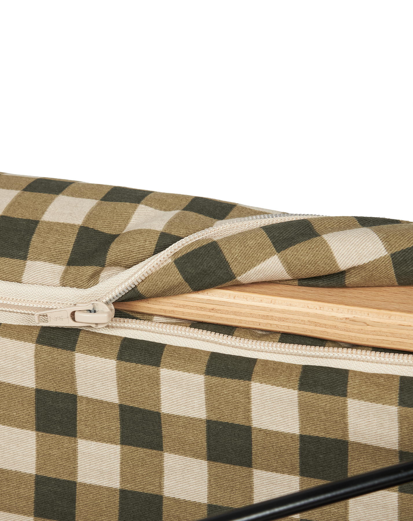 The organic cotton cover fastens to the wooden structure with very resilient zips.