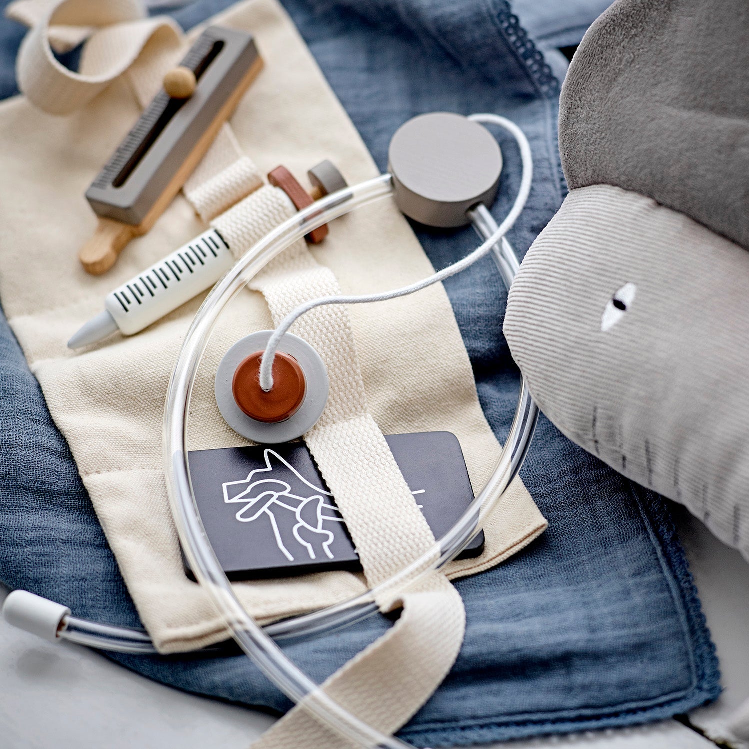 The Doran Play Set by Bloomingville MINI is perfect for little veterinarians. This set includes everything your child needs to take care of their plush friends and pets. The set is made of lotus wood, is 100% FSC certified, and comes in a gift box.