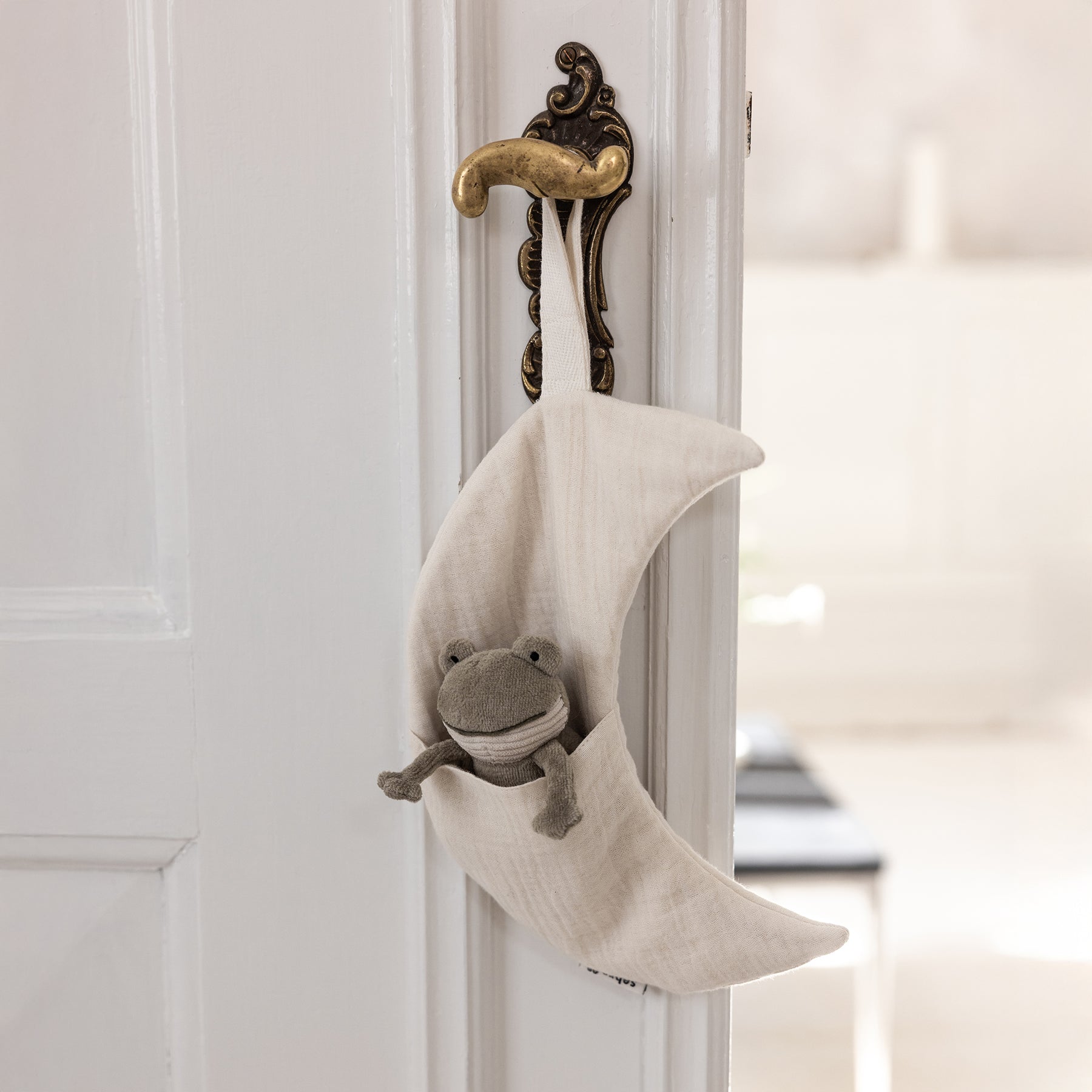 The moon is made from super-soft, eco-labelled cotton and can easily be hung on the cot, changing table, or anywhere else a little storage solution is needed. Its design makes it just as suitable as decoration as it is for keeping everyday life organised.