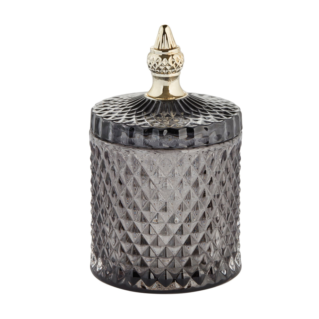 Cabana Black Stripped Ceramic Candle In Lava Stone