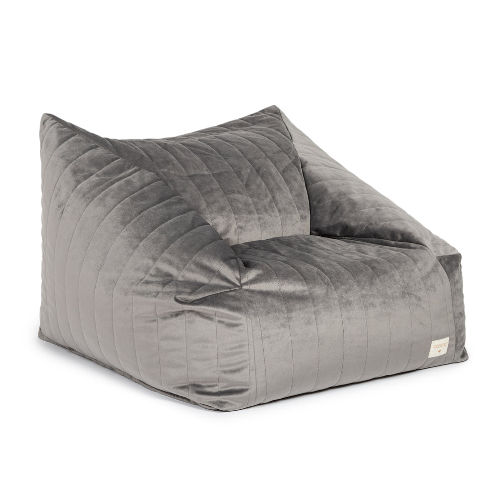 Chelsea lænestol sækkestol i skifergrå fløjl fra Nobodinoz