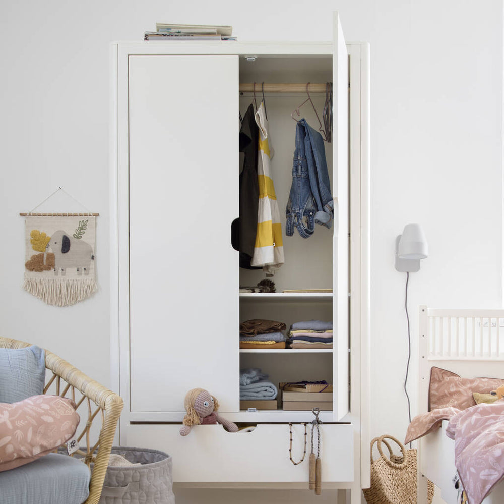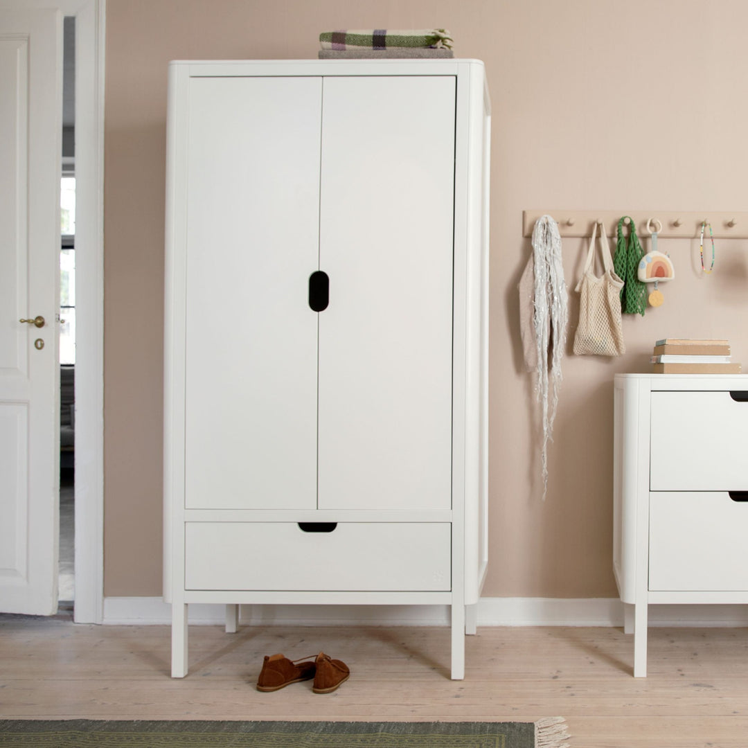 Klassisk hvidt bøgetræ dobbeltdørs garderobeskab fra Sebra - FORUDBESTILLING