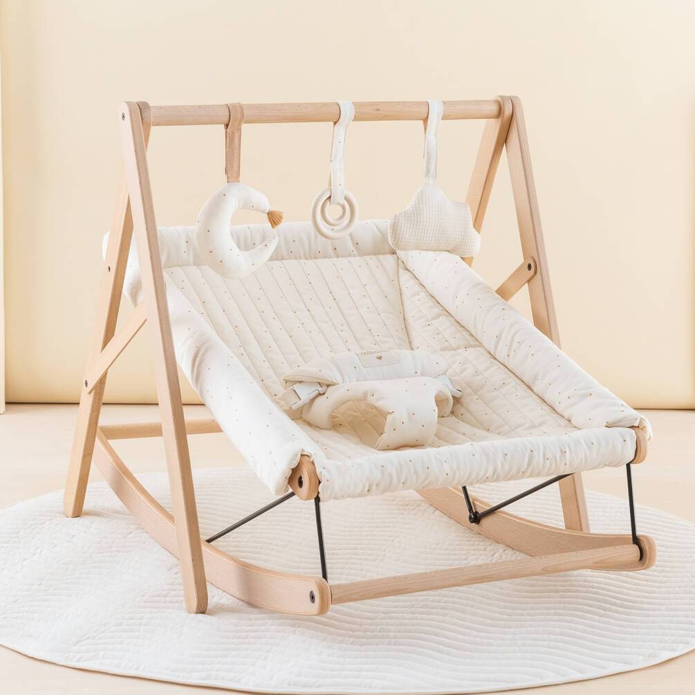 Growing Green Baby Bouncer Cover i Sweet Honey Dots fra Nobodinoz