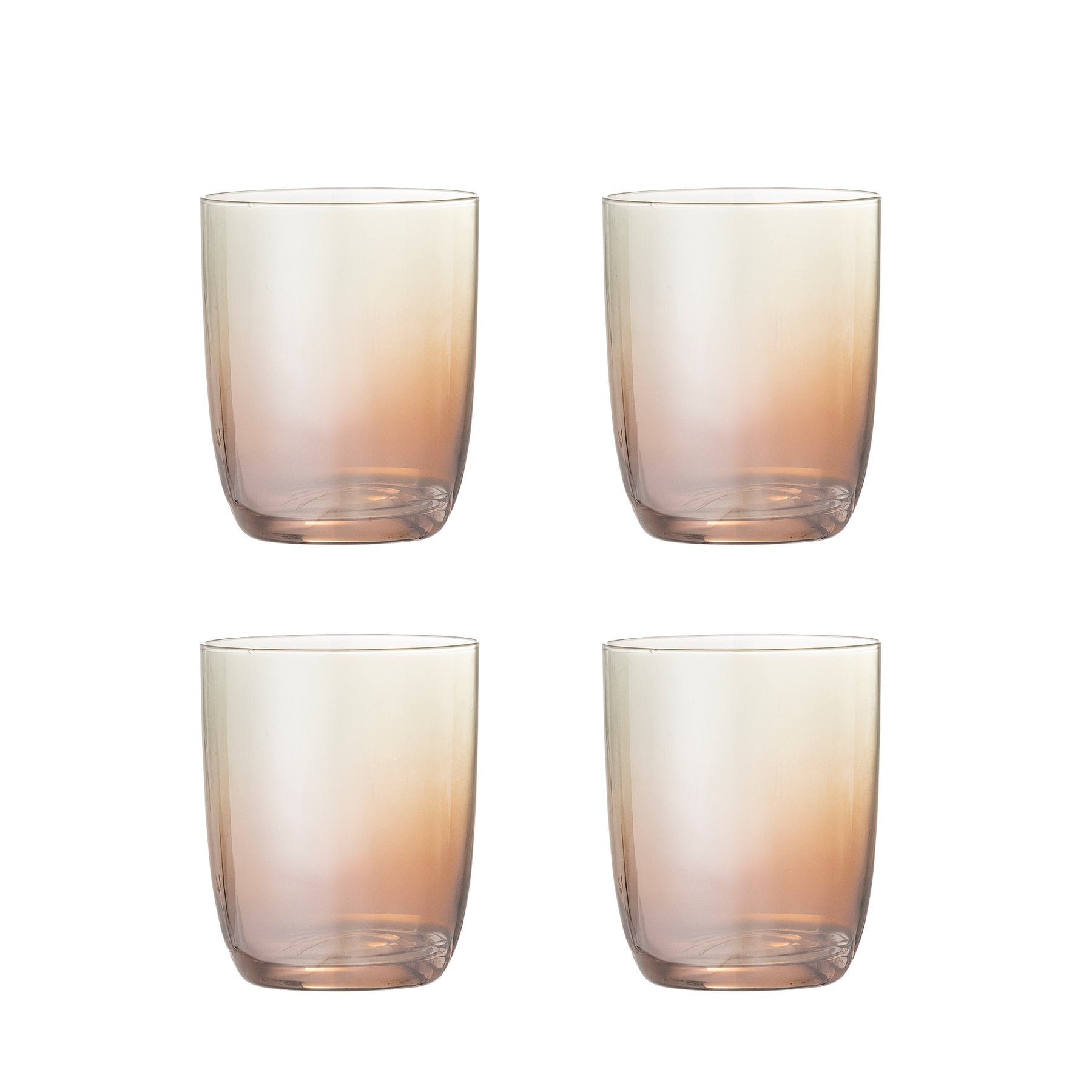 The Aston Drinking Glass by Bloomingville has a bronze-colored finish with a mother-of-pearl rim that catches the light beautifully. The simple design makes them suitable for both everyday and special occasions. The set consists of 4 glasses.
