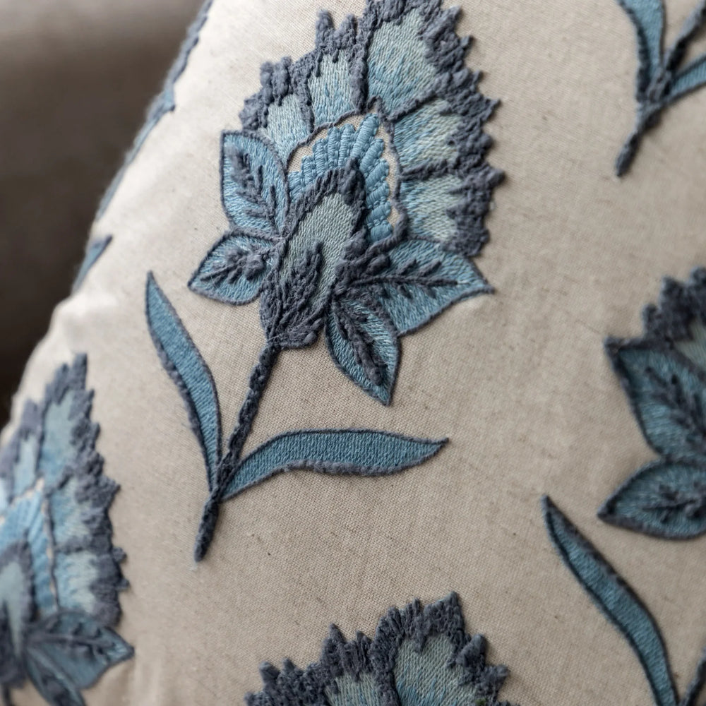 Truro Striped 100% Cotton Feather Filled Cushion in Skyline