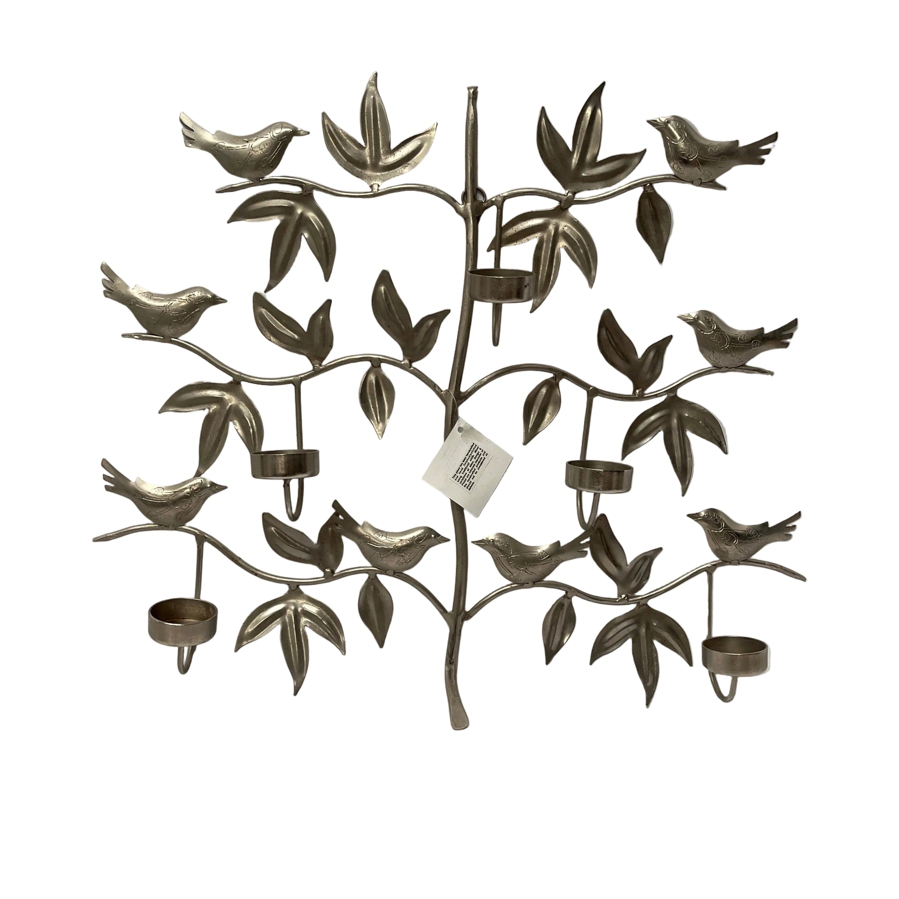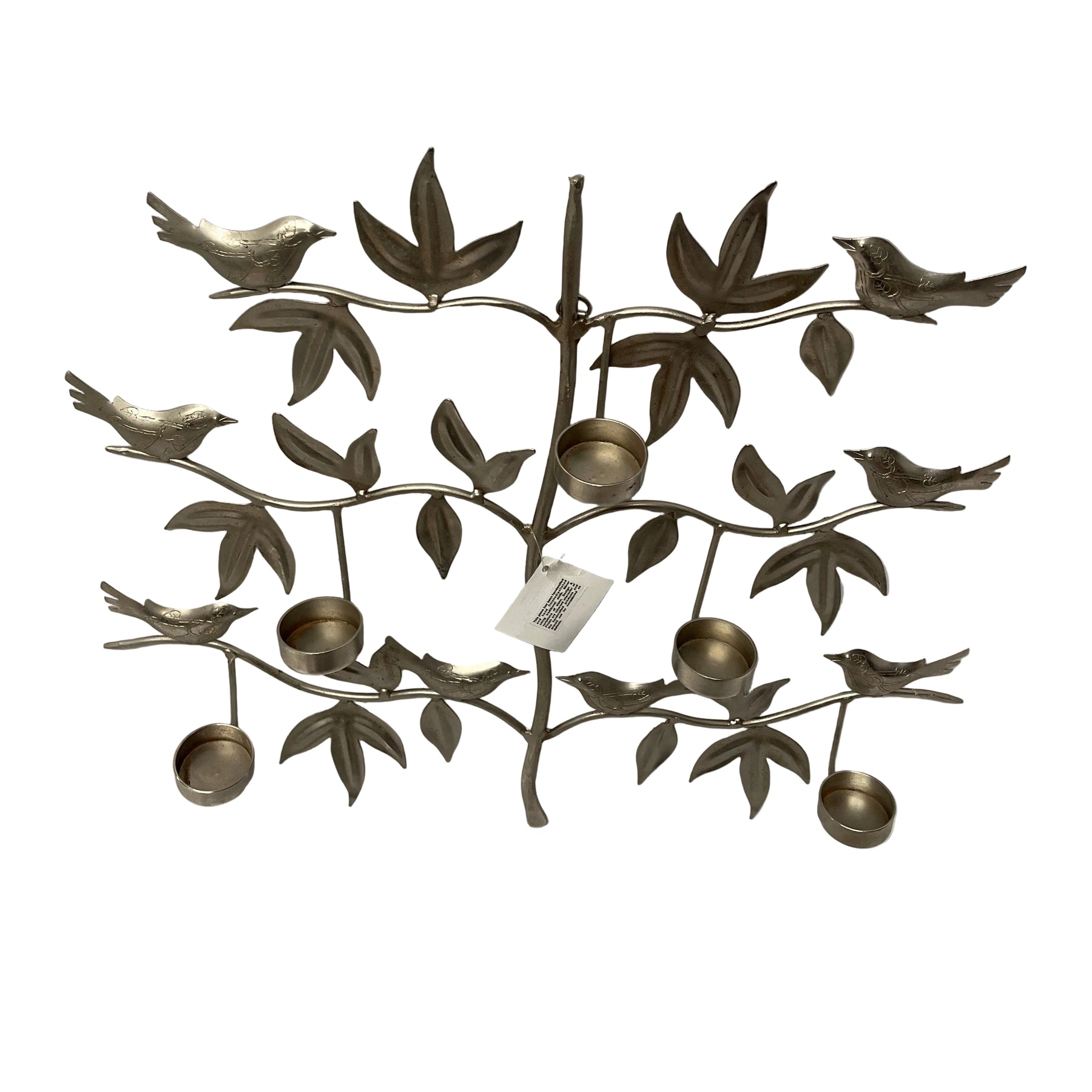 Tree With Birds Metal Wall Hanging Tea Light Holder