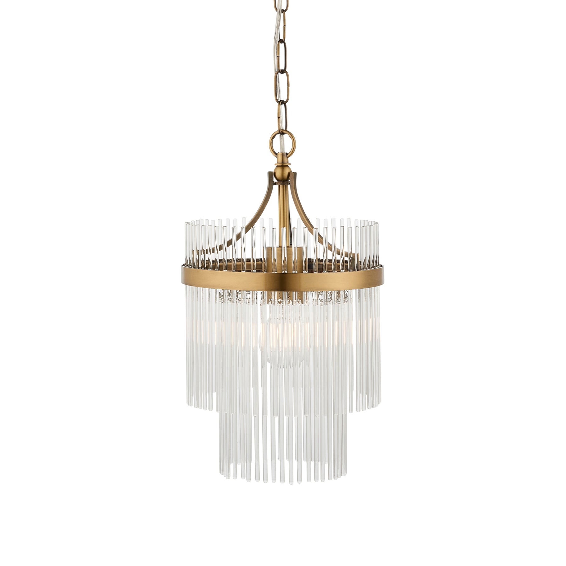 Finished in antique brass and decorated with clear glass rods that delicately diffuse the light, suspended from height adjustable chain, with clear flex .Ideal for adding a decorative touch to interiors, perfect for dining rooms, hallways and over kitchen islands, creating that iconic classic look.