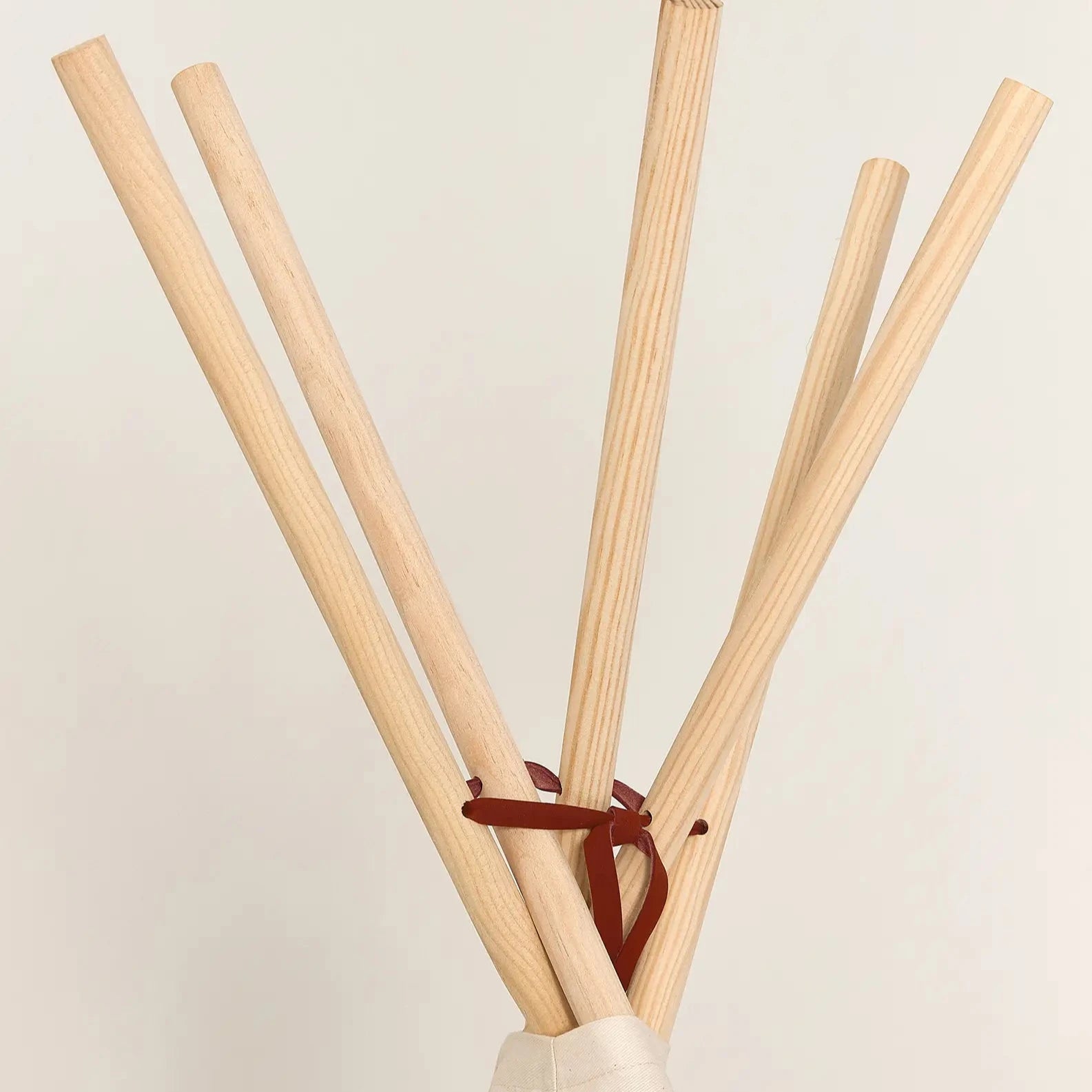 Fremstillet af højkvalitets lærred og fyrretræ er den trimmet med et par naturlige indiske træfjer.
