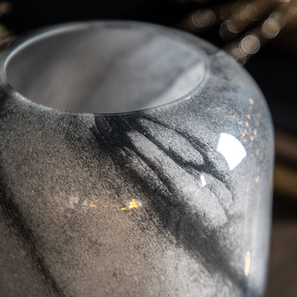 Denne batteridrevne lampe er fantastisk til at tilføje en omgivende glød til ethvert område i dit hjem. Glasskærmen har en finish med hvid marmoreffekt og sidder på en guldmetalbund.