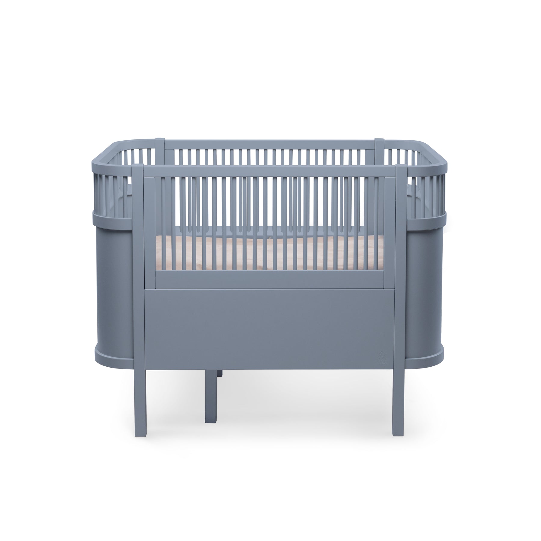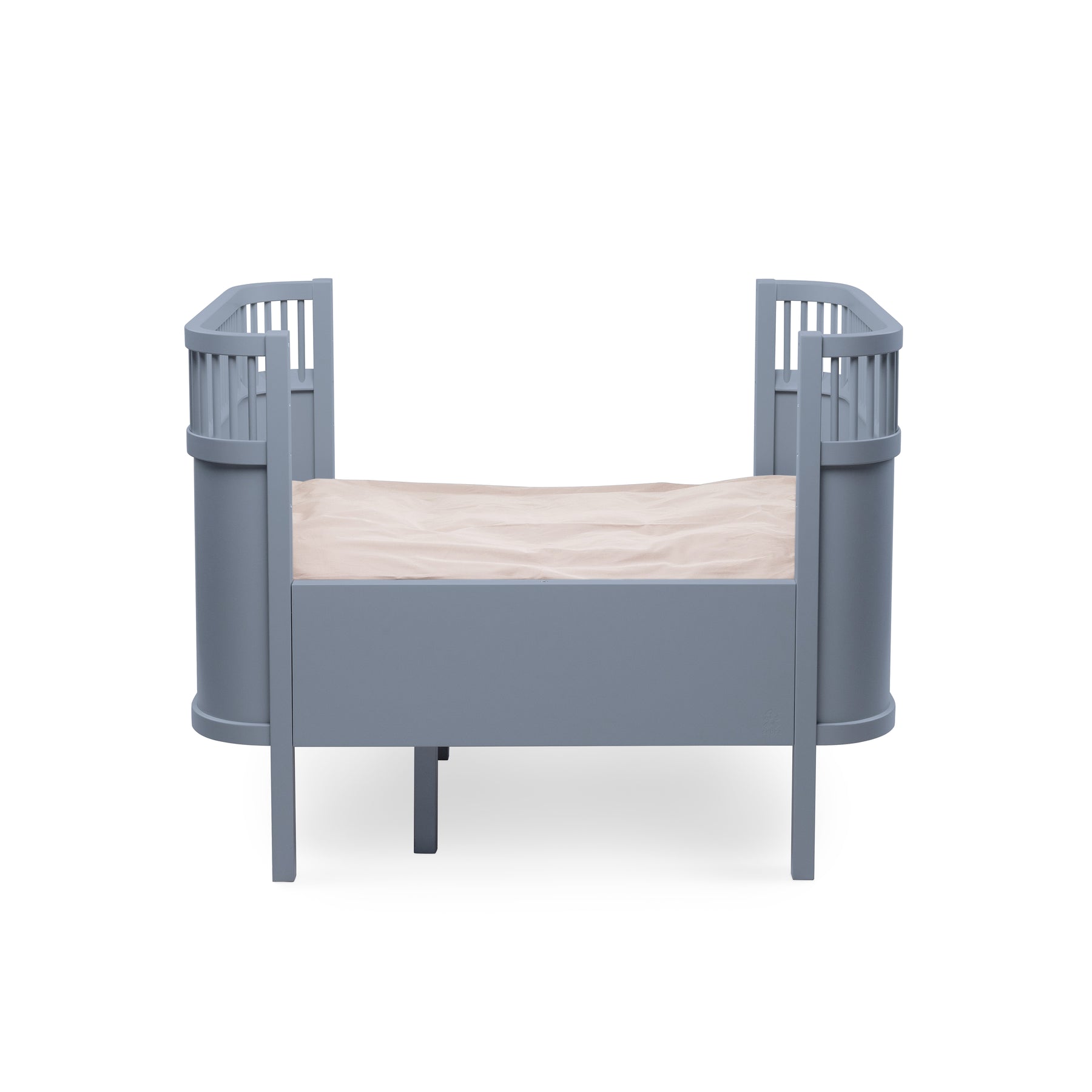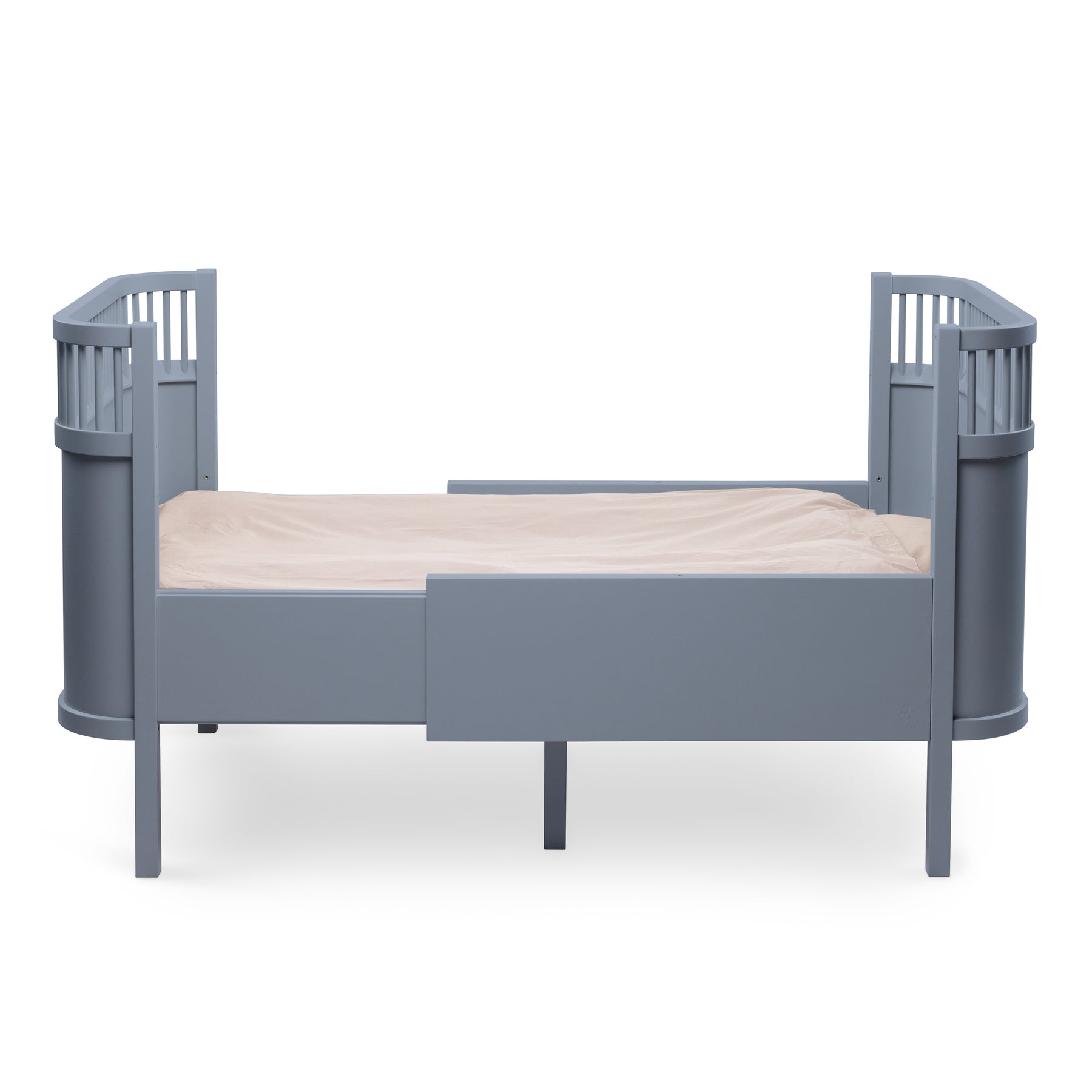 Sengen er udstyret med en højdejusterbar bund og aftagelige sidepaneler, der forvandler tremmesengen til en juniorseng.