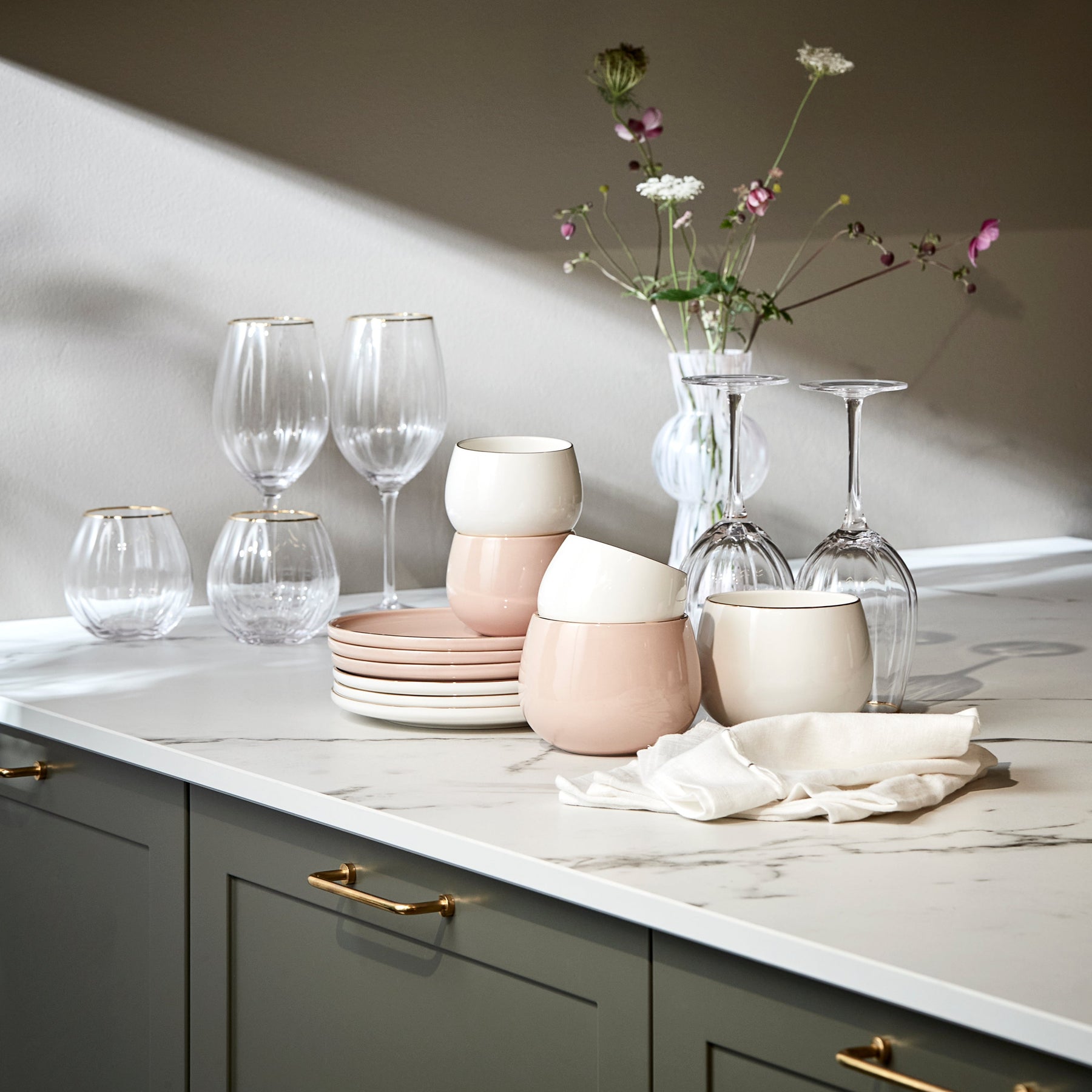 Vi har vinglas, vandglas og øl- og champagneglas i samme design, og de er et fantastisk sæt glasvarer, der er velegnet til hverdagsbrug og perfekt til særlige lejligheder.
