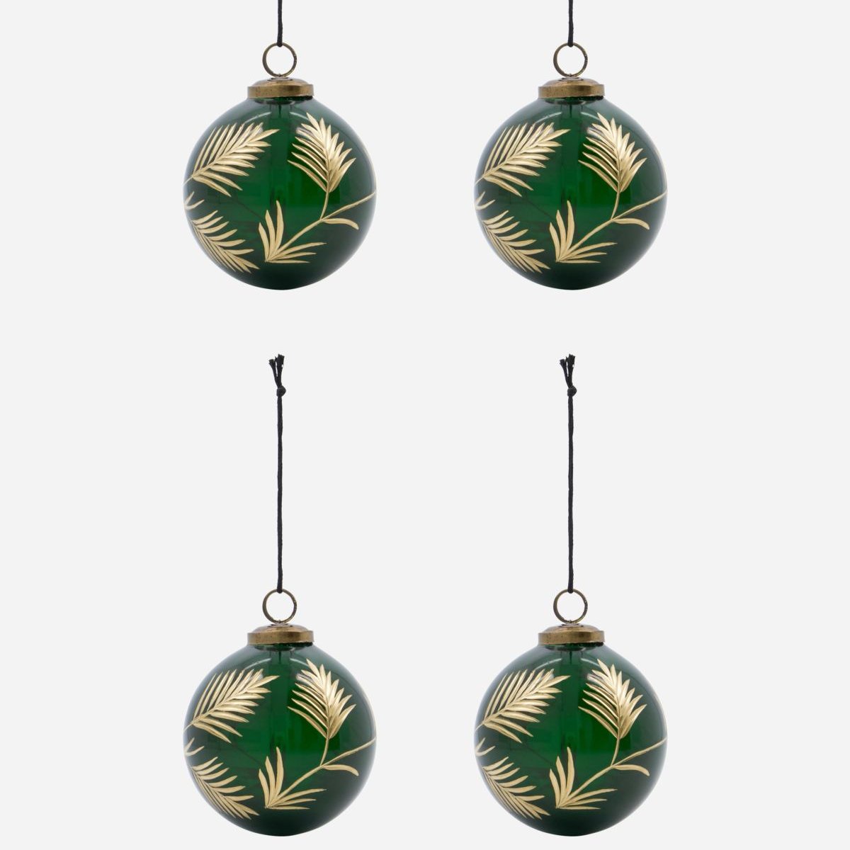 These very elegant, dense glass baubles are engraved with a golden leaf pattern, creating the right balance of tradition and style. For a well-considered theme, use the baubles as a stand-out detail among other green ornaments.