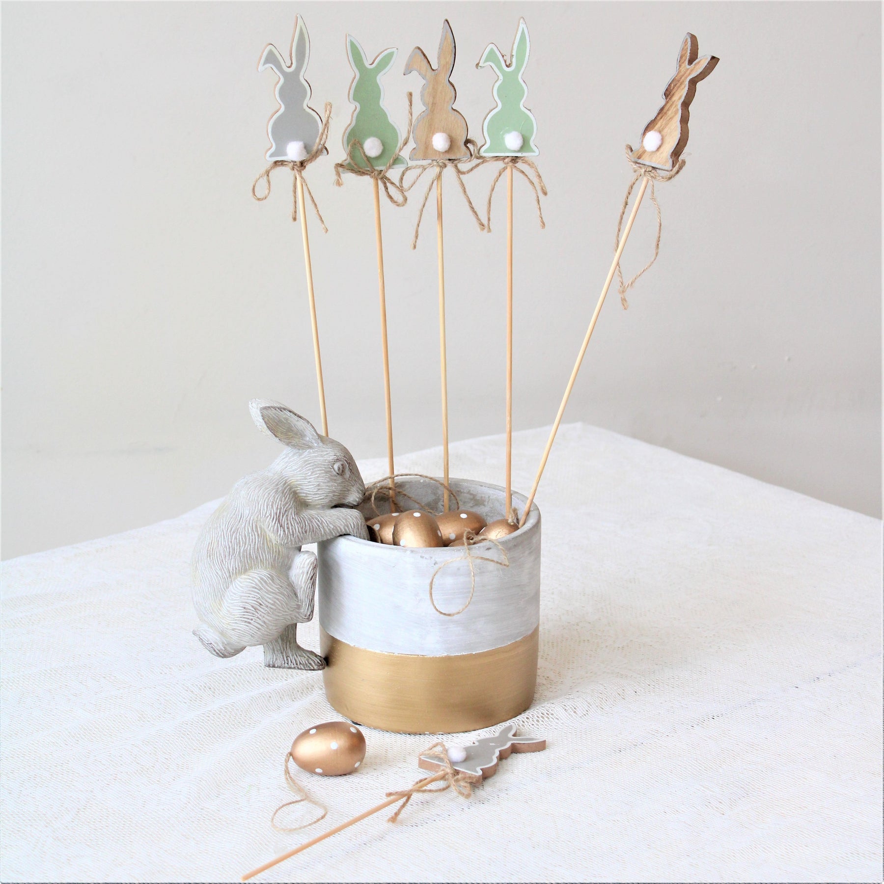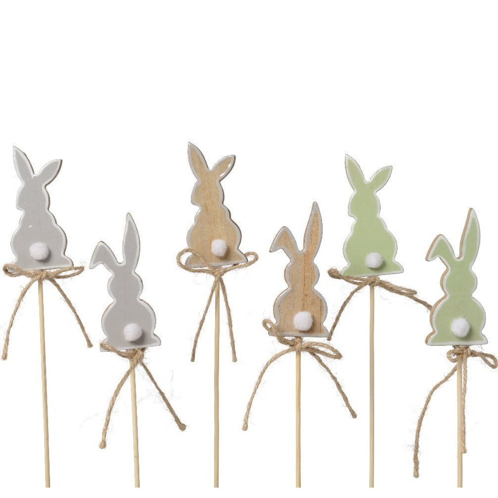 Dette yndige sæt kaninhakke i træ er perfekt til at tilføje karakter til din påskeborddækning.