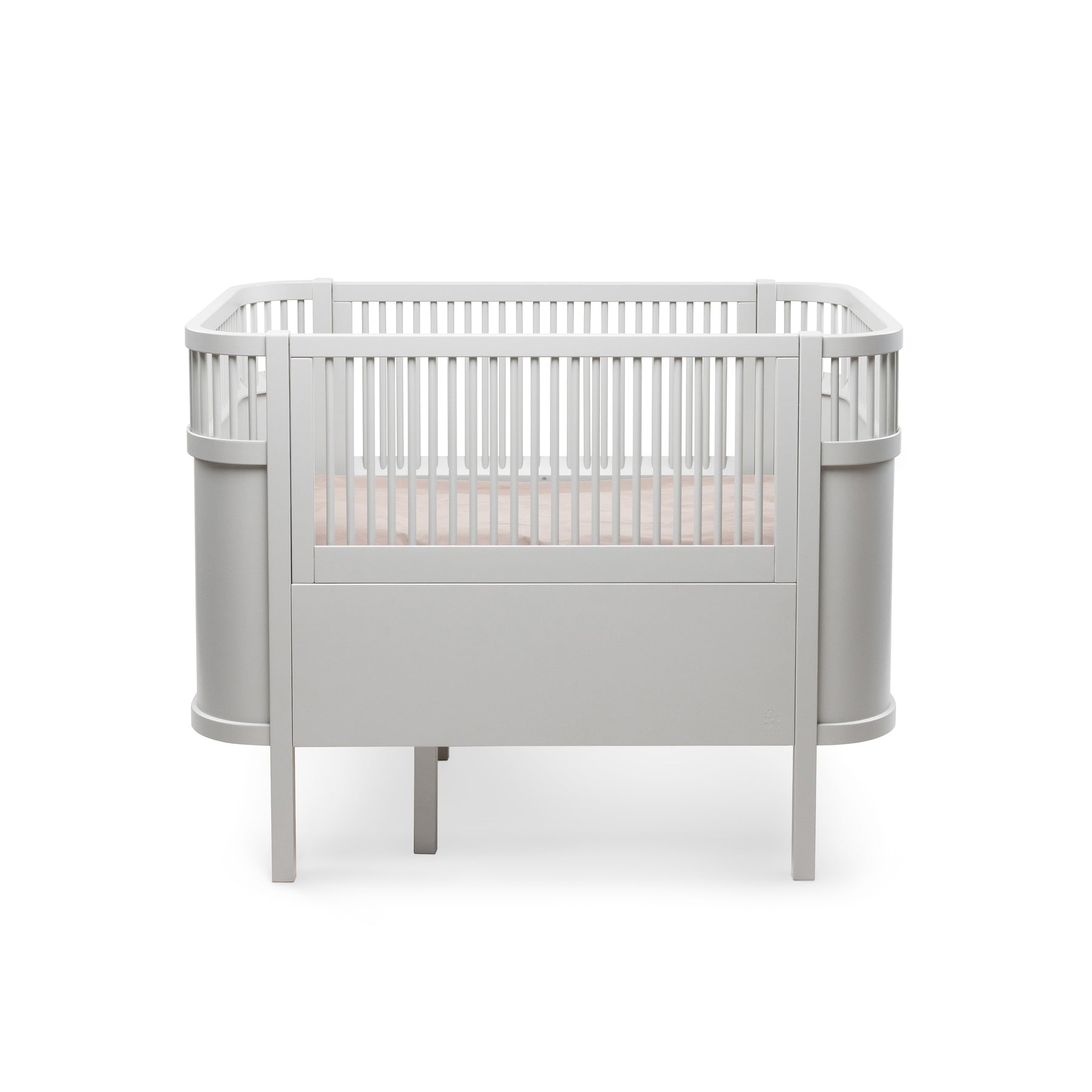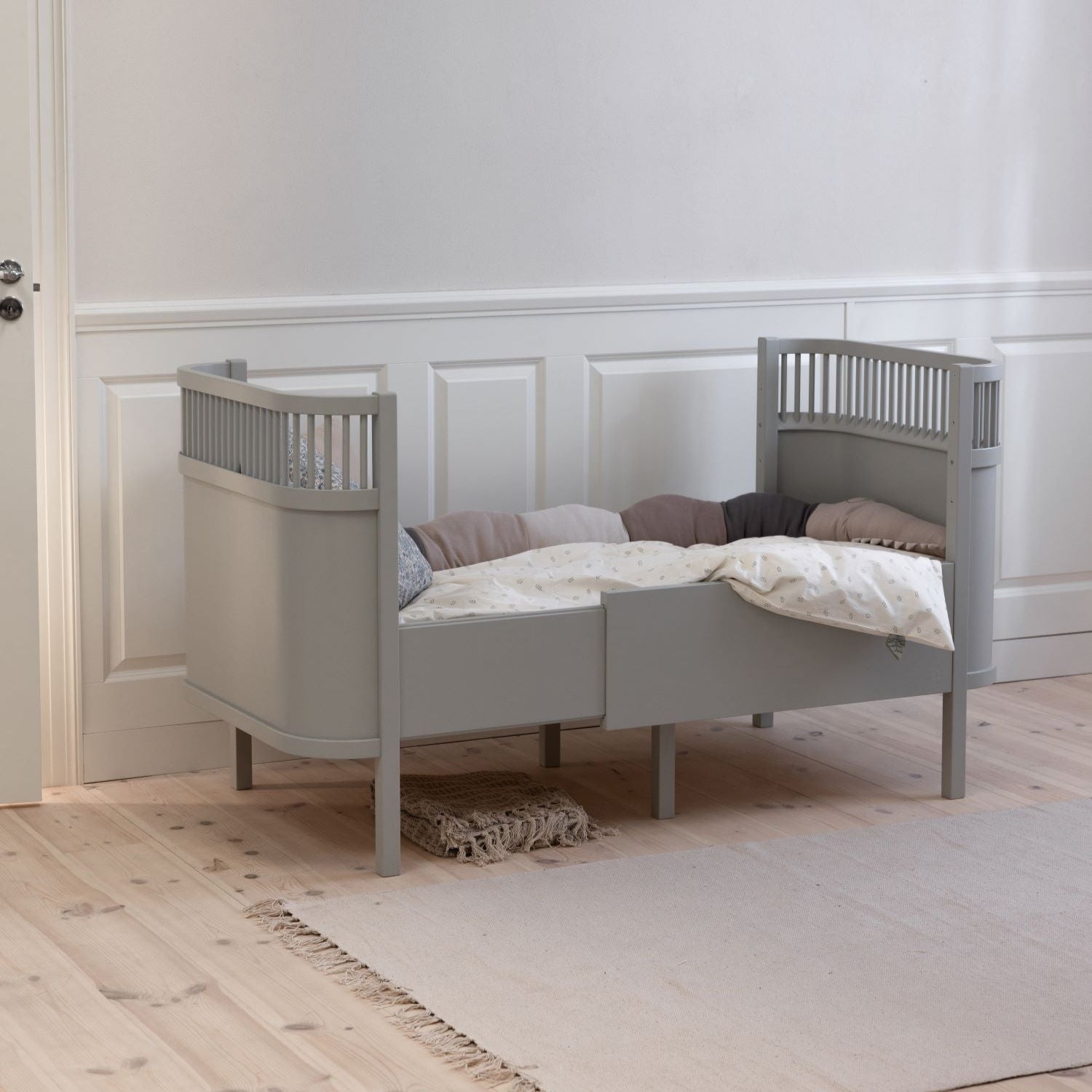 Sengen er udstyret med en højdejusterbar bund og aftagelige sidepaneler, der forvandler tremmesengen til en juniorseng.