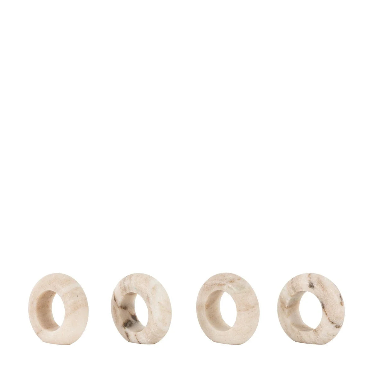 Hand carved from stunning natural marble, this set of 4 napkin rings will add a sophisticated finishing touch to any dining table. The flat bottoms allow each ring to sit smoothly on a dinner plate or setting.