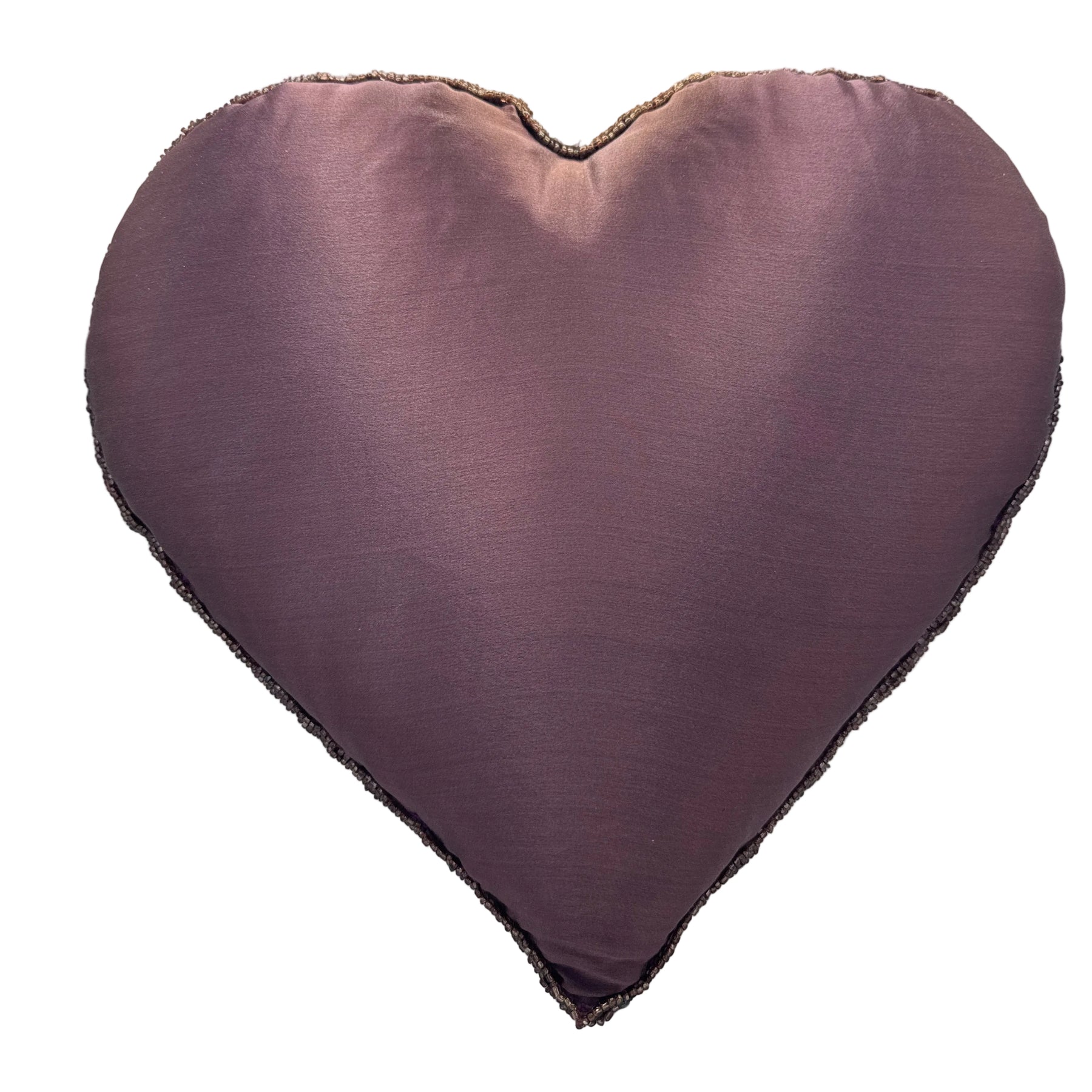 A beautifully textured beaded heart cushion with a rich, decorative finish, perfect for adding warmth and character to sofas, chairs or beds.