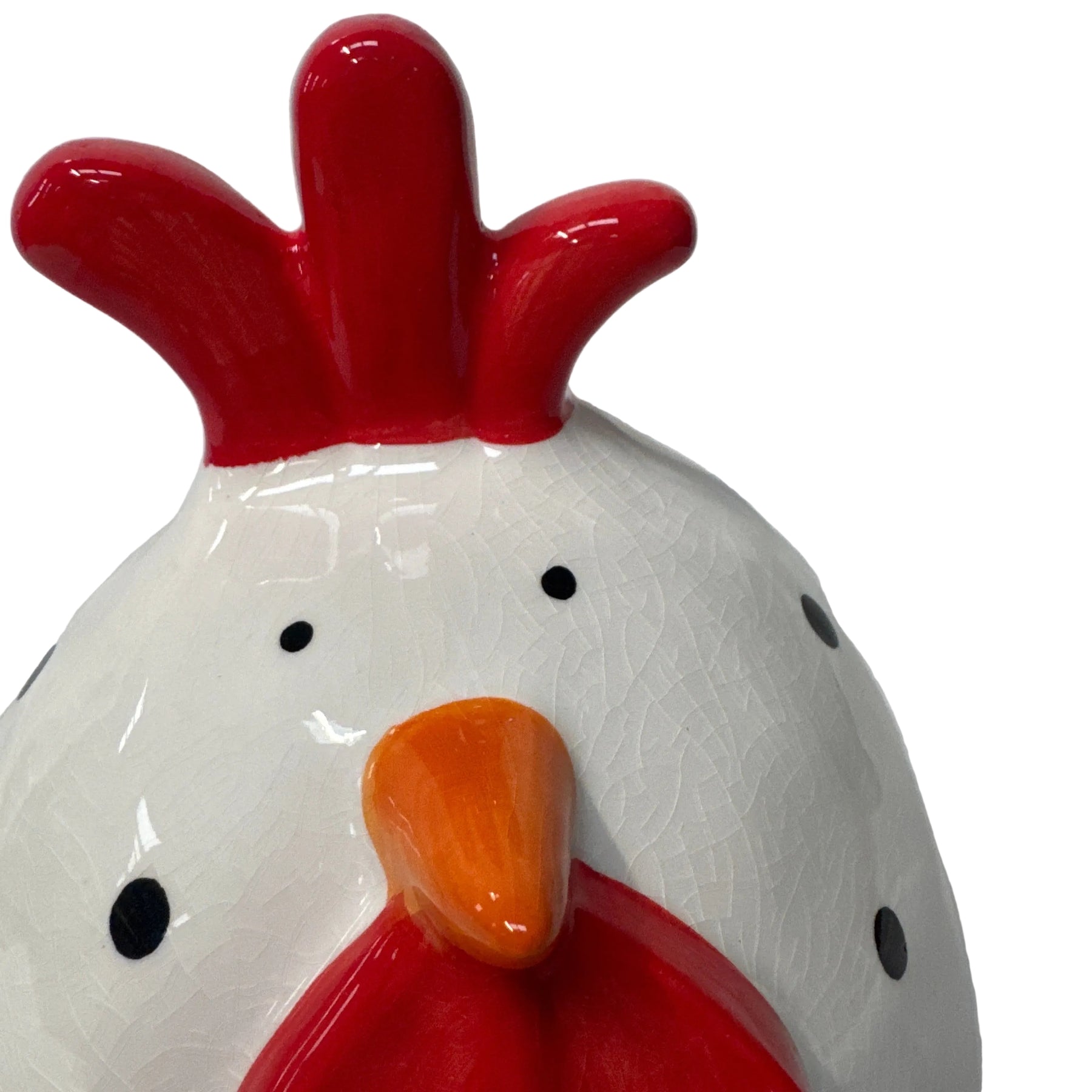 A charming porcelain rooster ornament with a classic white finish, polka dot detailing and bold red accents. A playful yet timeless decorative piece for shelves, dressers or kitchen styling.