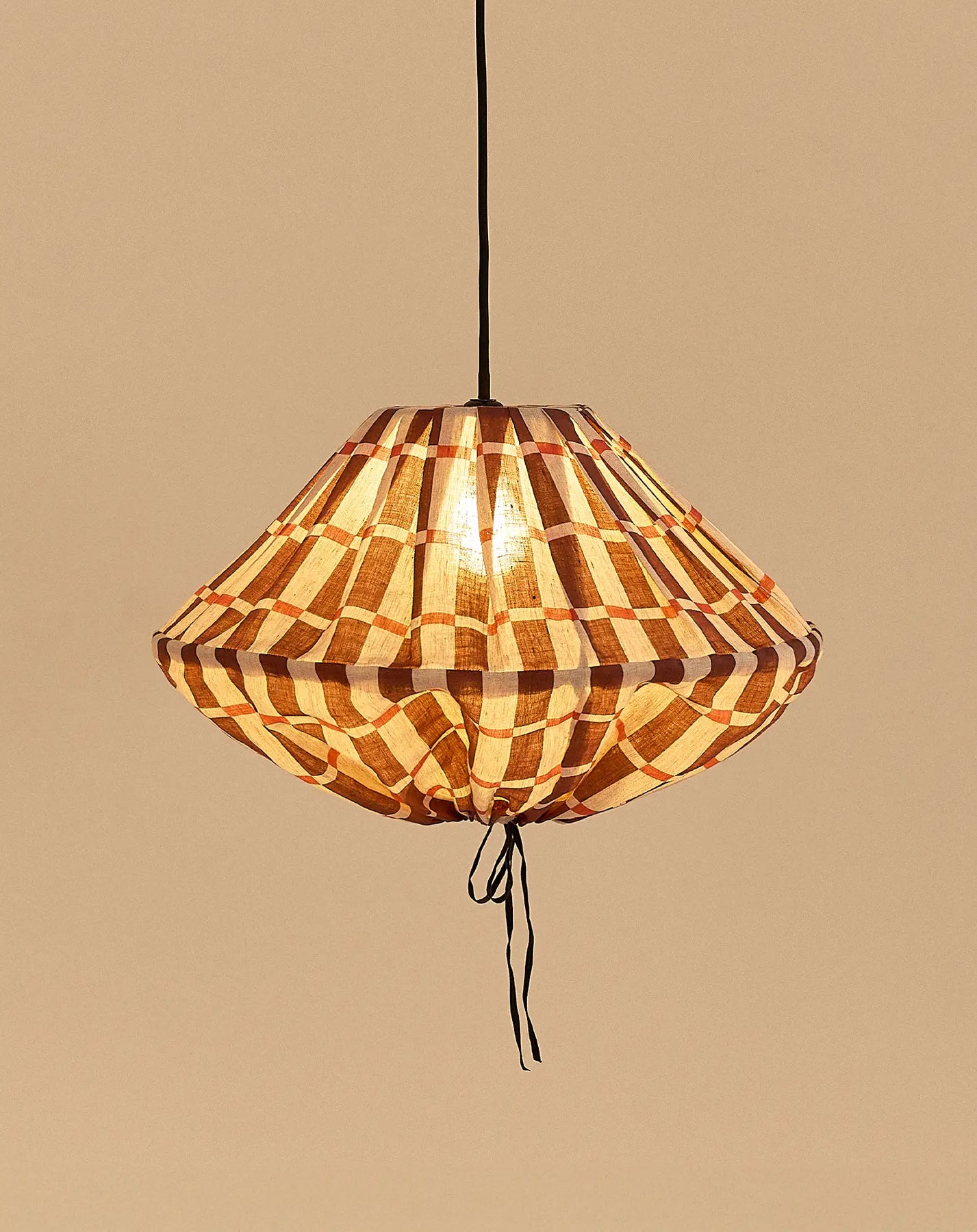 Nododinoz Yumi Linen Lampshade in Maroon Red Mosaic 50cm