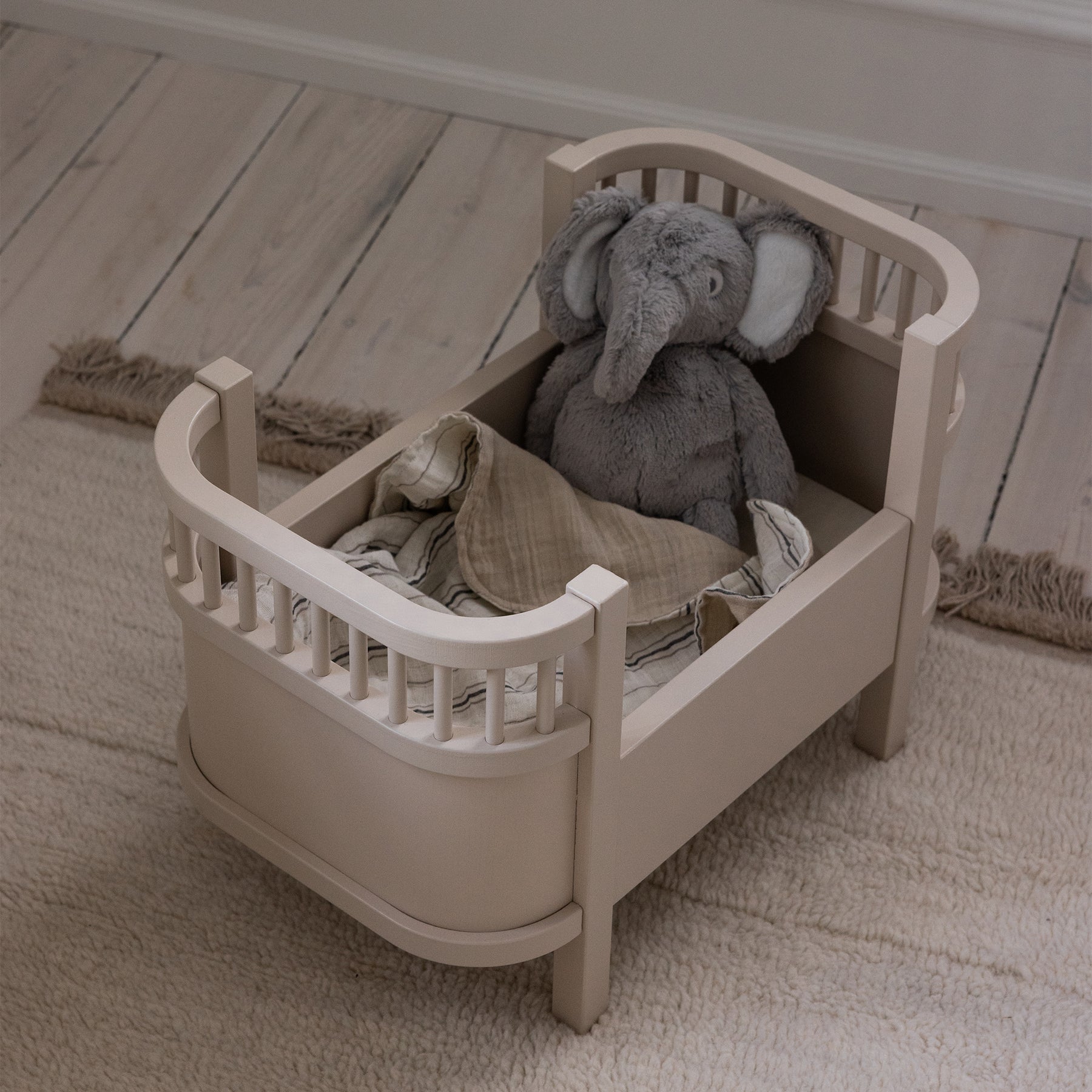 Cette version miniature du lit bébé classique de conception danoise constitue le cadeau de luxe idéal pour les petites filles.