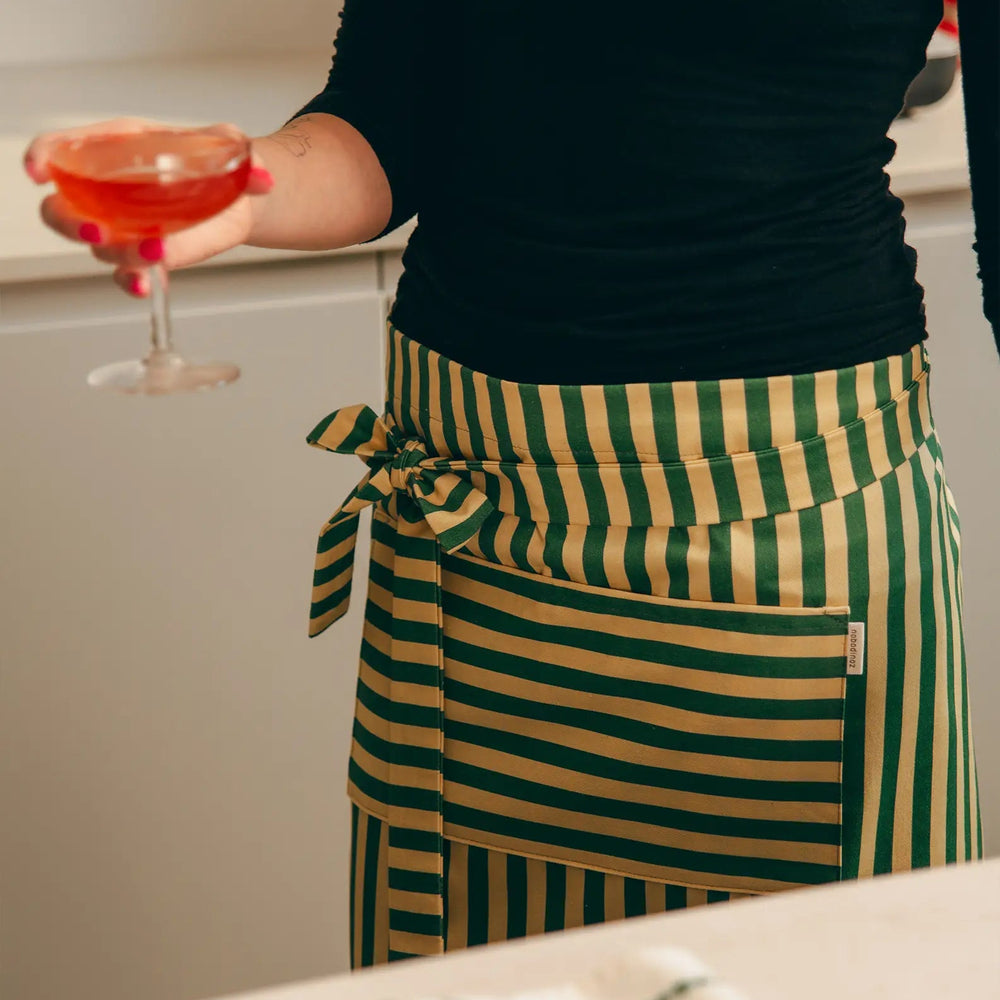 Nododinoz Waist Apron in Dark Green Stripes