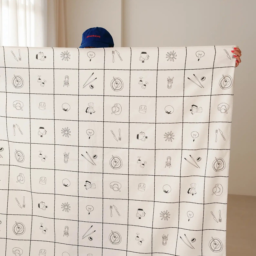 Nododinoz Sarga Tablecloth in Tiles Black Lunch