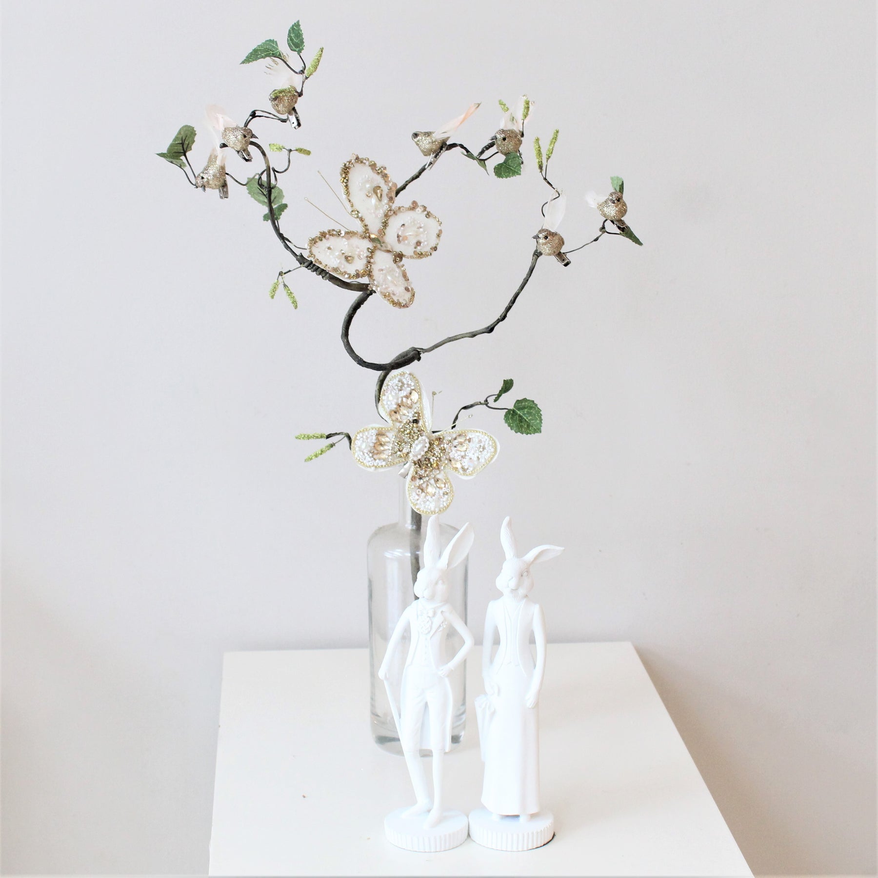 It looks pretty with our gold glitter clip on mini birds on a branch or display tree .